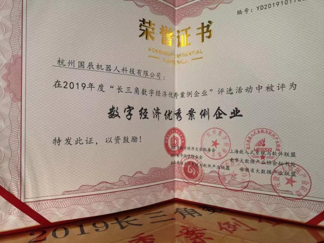 杭州國辰機(jī)器人科技有限公司榮獲“長三角數(shù)字經(jīng)濟(jì)創(chuàng)新案例企業(yè)”稱號